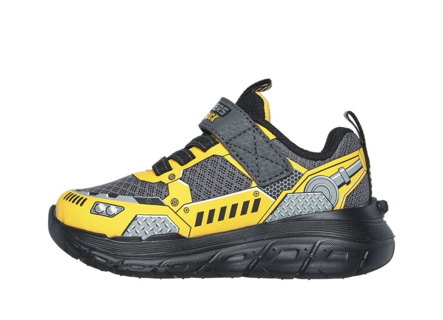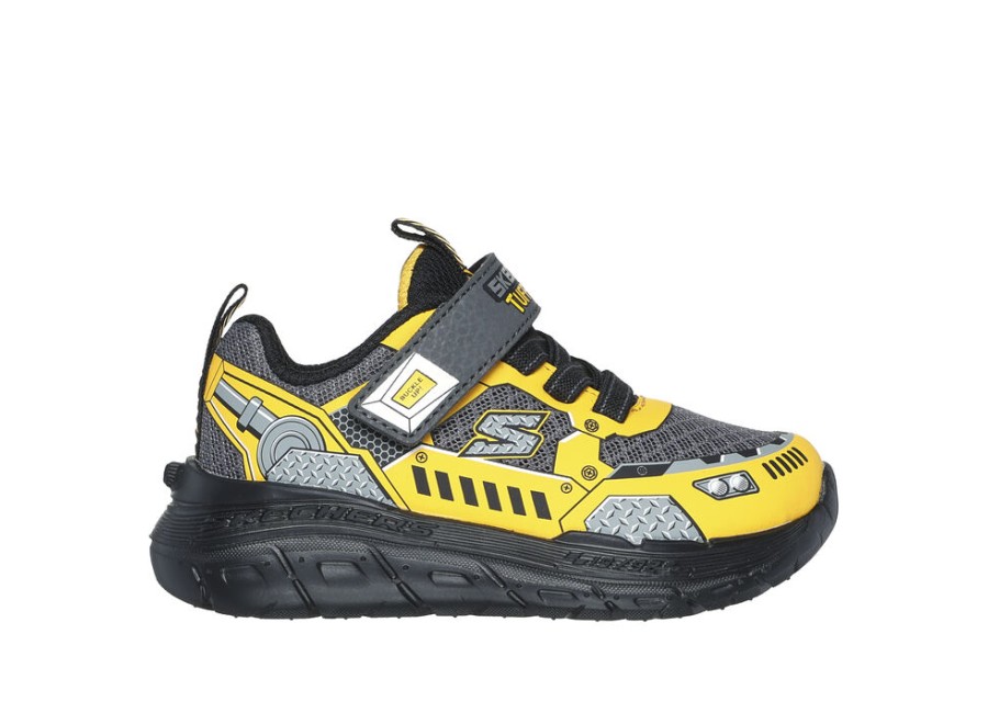 Skechers Gore & Strap Vehicle Details Γκρι-Κιτρινο Βρεφικά Παπούτσια