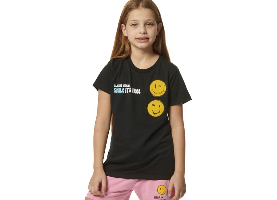 Body Action G Short Sleeve Flock Print Black Παιδικά T-Shirt