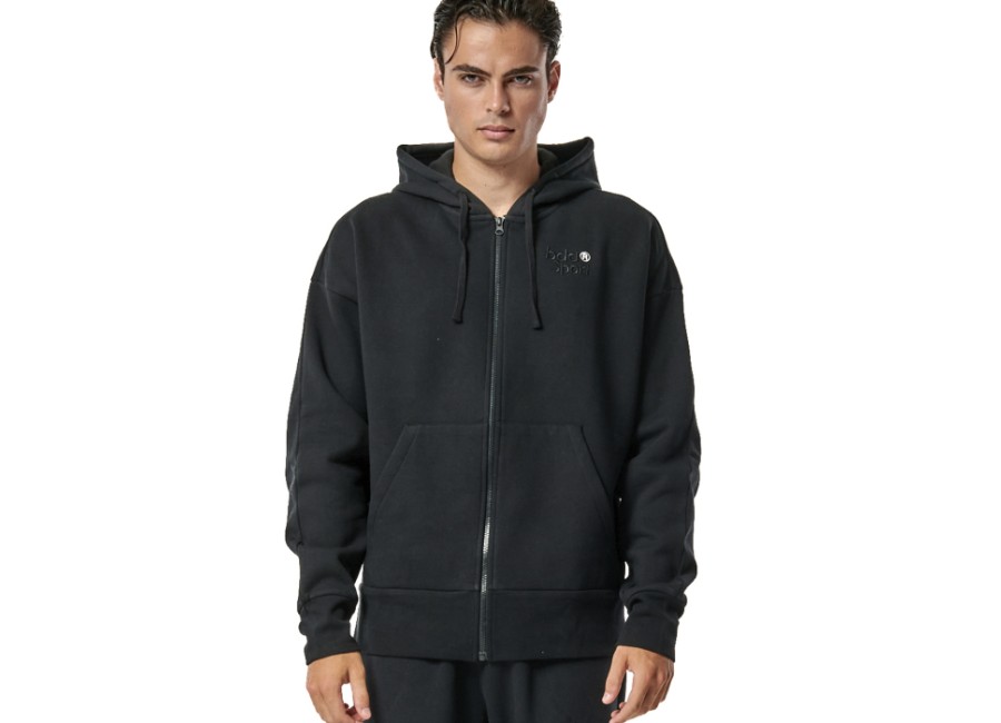Body Action M Fleece Zip-Up Hoodie Black Ανδρικές Ζακέτες