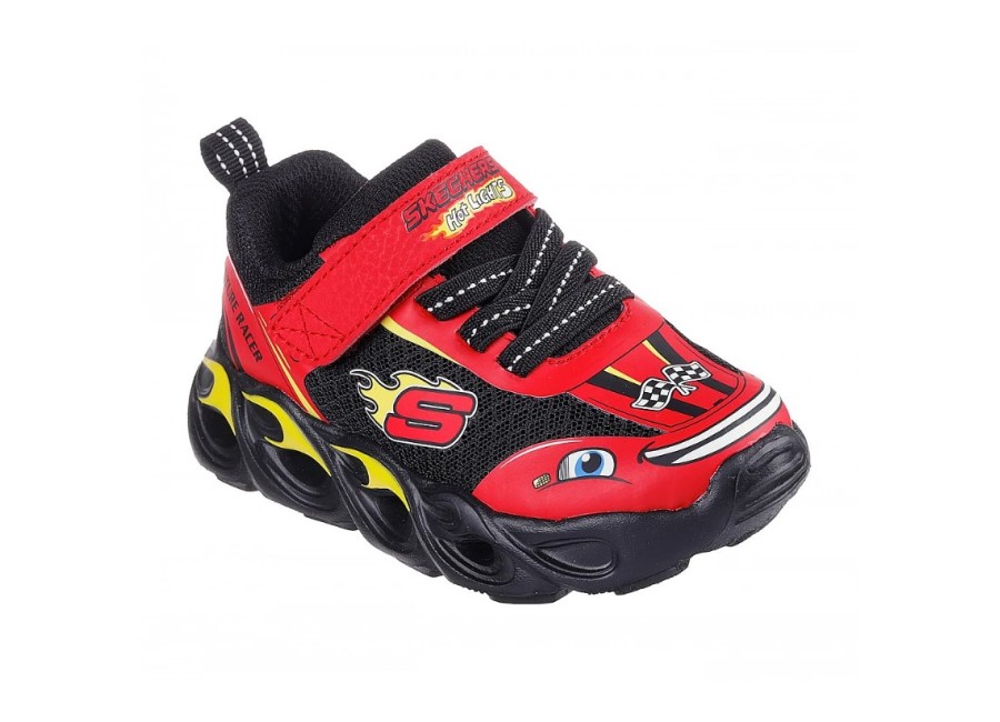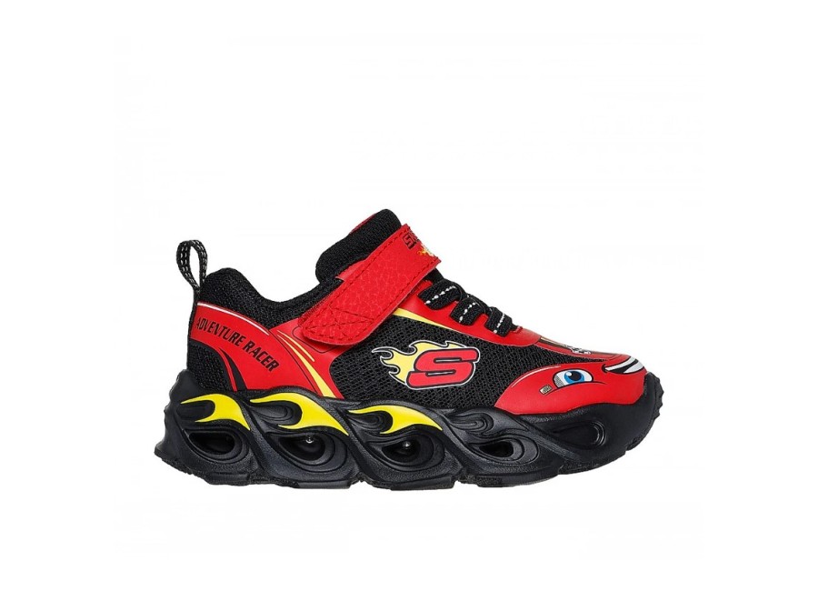 Skechers Wheel Buddies Κόκκινο-Μαύρο Βρεφικά Παπούτσια Με Φωτάκια