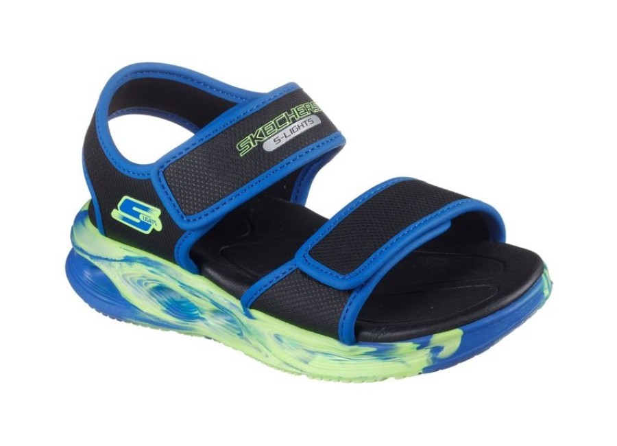 Skechers Lighted Sandal Fusion Brights Μαύρο Μπλέ Παιδικά Πέδιλα Με Φωτάκια